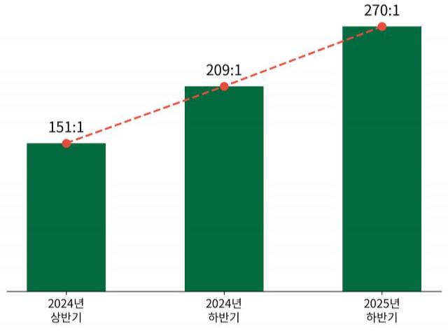 • 2024년 상하반기 직원 채용 경쟁률 151대 1, 209대 1에서 지난해 270대 1로 더 높아져